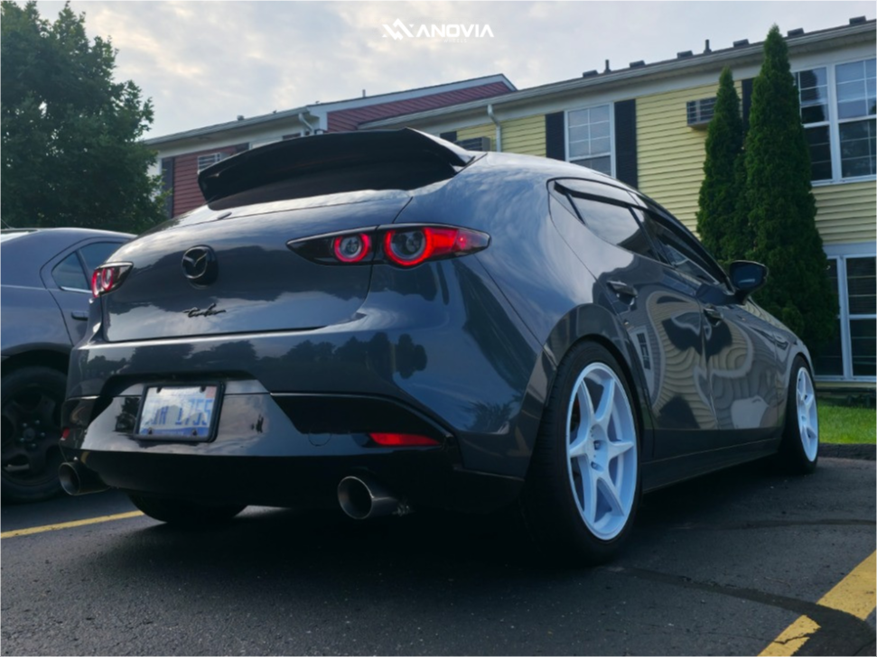 Yes they do! This 2021 Mazda 3 AWD is running Anovia Titan 18x8.5 wheels, Kosic Drs-7 245/40 tires with Corksport Lowering Springs suspension, and needs No Modification and has No rubbing or scrubbing. As you can see from the pics this wheel and tire combo can be done!** With this 2021 Mazda 3, the stance is Poke. Also remember spacers impact fitment, this ride is running None in front and None in rear.